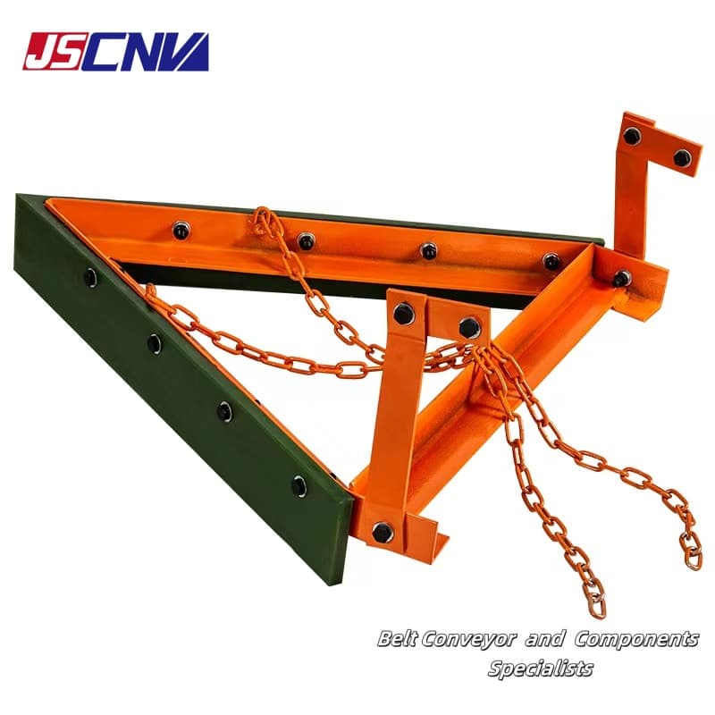 V-Plow belt cleaner imhando yekudzoka bhandi rekuchenesa. Inonyanya kushandiswa pamberi pe conveyor bend pulley yebhandi conveyor uye pamberi peinorema vertical tensioning device. Iyo ine hunhu hweasidhi uye alkali kuramba, murazvo unodzoreredza uye antistatic, yakakwirira kupfeka kuramba, uye haina kukuvadza bhandi. Iyo blade yakagadzirwa nepamusoro-simba polyurethane, iyo V-yakaita dhizaini inovimbisa kuchena kwebhandi, uye otomatiki giravhiti dhizaini inovimbisa otomatiki-muripo kana blade yapera.